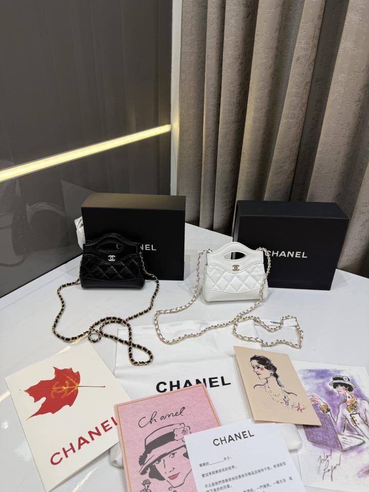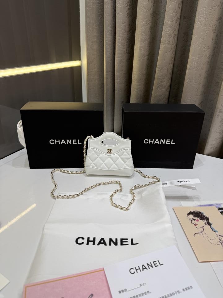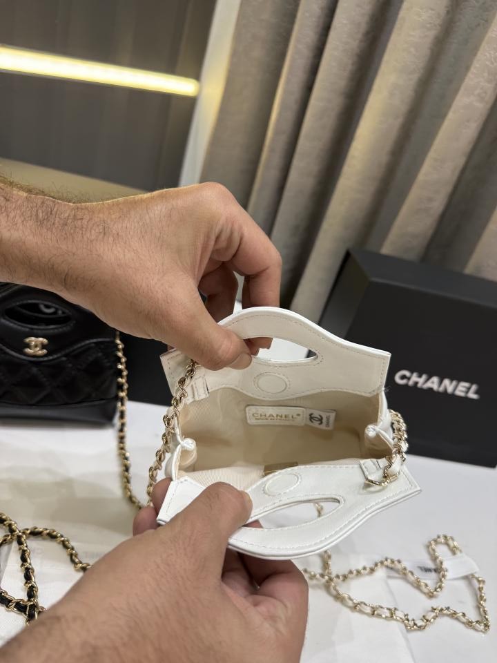 CHANE.L 31 WHITE MICRO SHOPPER SHINY BAG PREMIUM WITH OG BOX & ACCESSORIES